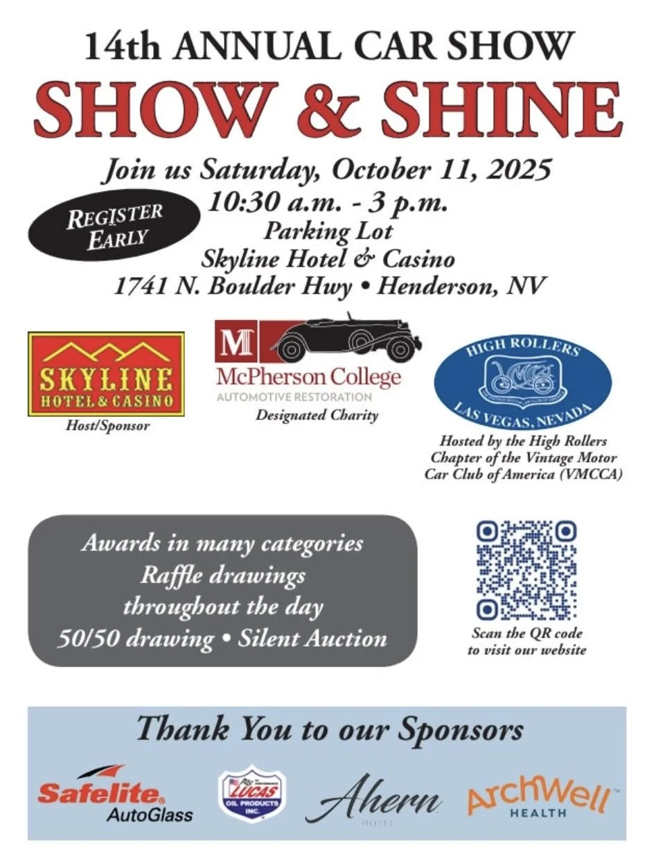 14th Annual Car Show and Shine at Skyline Hotel Oct 11th 2025 Saturday, October 11, 2025 10:30 AM 3:00 PM Google Calendar ICS