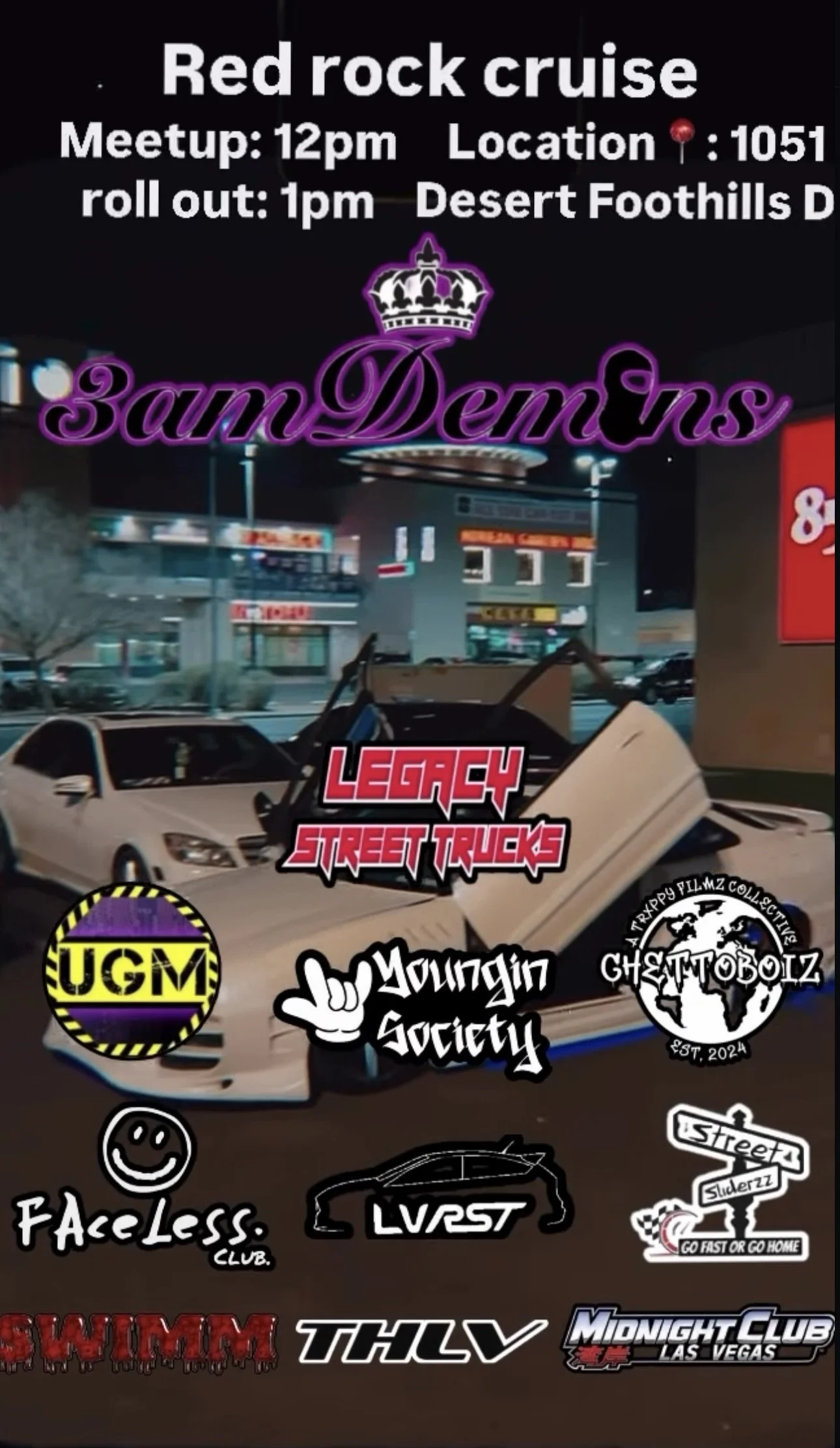 Back to All Events 3am Demons Red Rock Cruise March 2nd 2025 Sunday, March 2, 2025 12:00 PM 3:00 PM Google Calendar ICS
