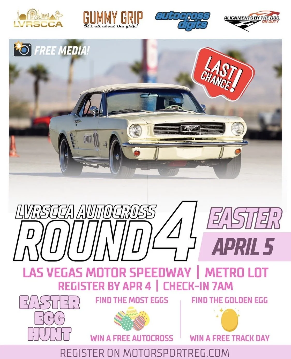LVRSCCA Autocross Round 4 Easter Egg Hunt apr 5th 2026 Sunday, April 5, 2026 7:00 AM 12:00 PM Google Calendar ICS