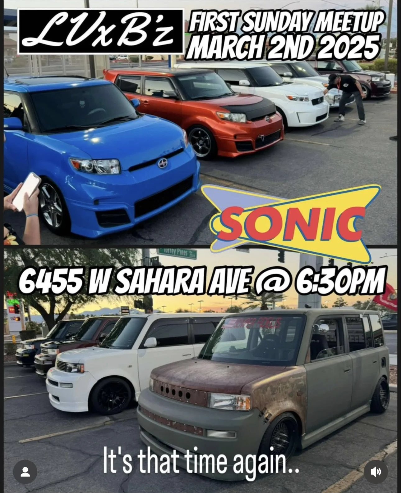 LVxBz First Sunday Meetup at Sonic March 2nd 2025 Sunday, March 2, 2025 6:30 PM 9:00 PM Google Calendar ICS