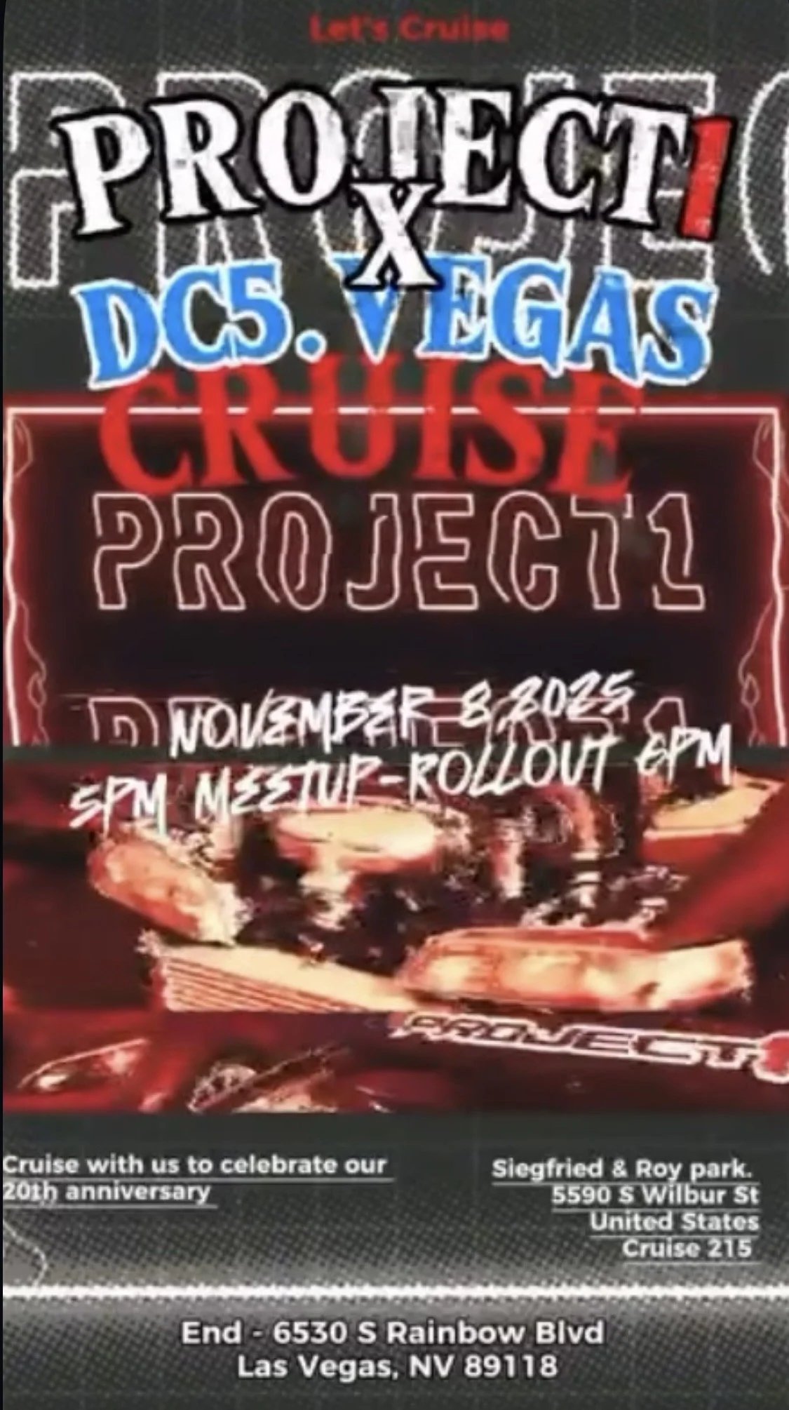 Project 1 DC5 Vegas Cruise nov 8th 2025 Saturday, November 8, 2025 5:00 PM 8:00 PM Google Calendar ICS
