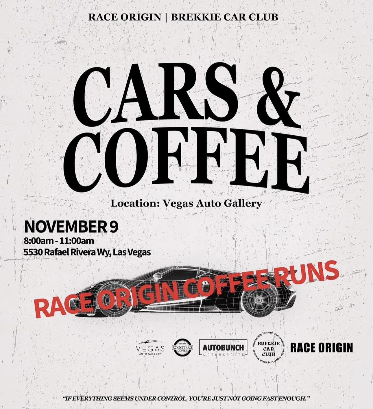 Race Origin Coffee Runs Brekkie Car Club Cars and Coffee at Vegas Auto Gallery November 9th 2024 Saturday, November 9, 2024 8:00 AM 11:00 AM 5530 Rafael Rivera Way Las Vegas, NV, 89118 United States (map) Google Calendar ICS