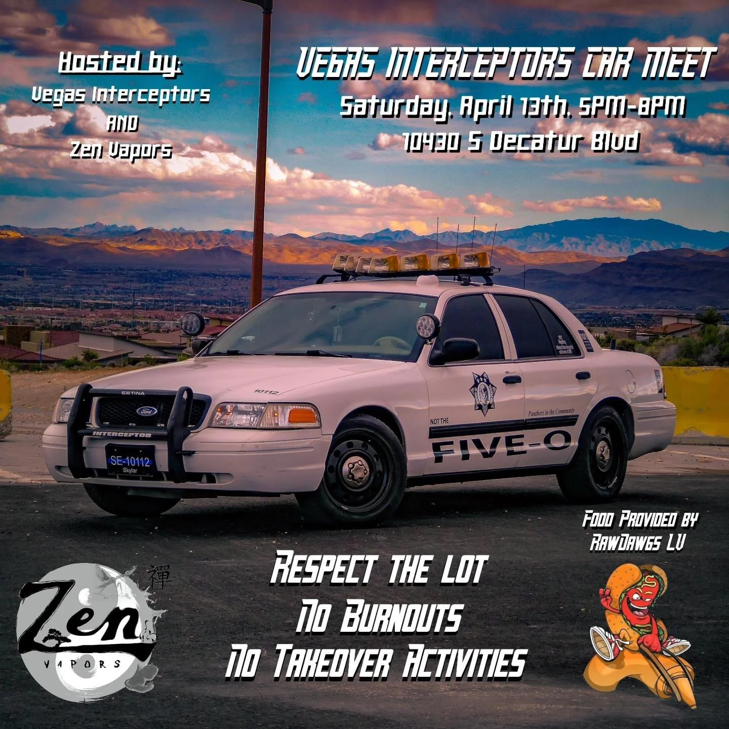 Vegas Interceptors Car Meet Hosted By Vegas Interceptors and Zen Vapors - Food by Rawdawgs LV - April 13th 2024 Saturday, April 13, 2024 5:00 PM 8:00 PM 10430 South Decatur Boulevard Las Vegas, NV, 89141 United States (map) Google Calendar ICS